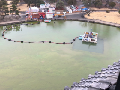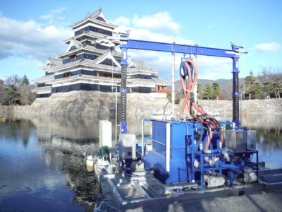 史跡松本城浚渫業務委託にて「オイルフロック」が用いられました。