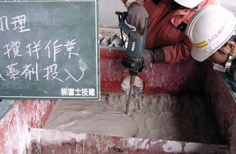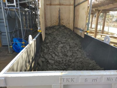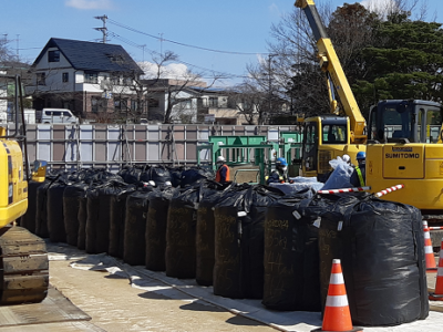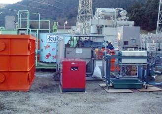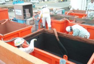 放射性物質を含んだ汚泥と水分を分ける凝集剤に「オイルフロック」使用されました。